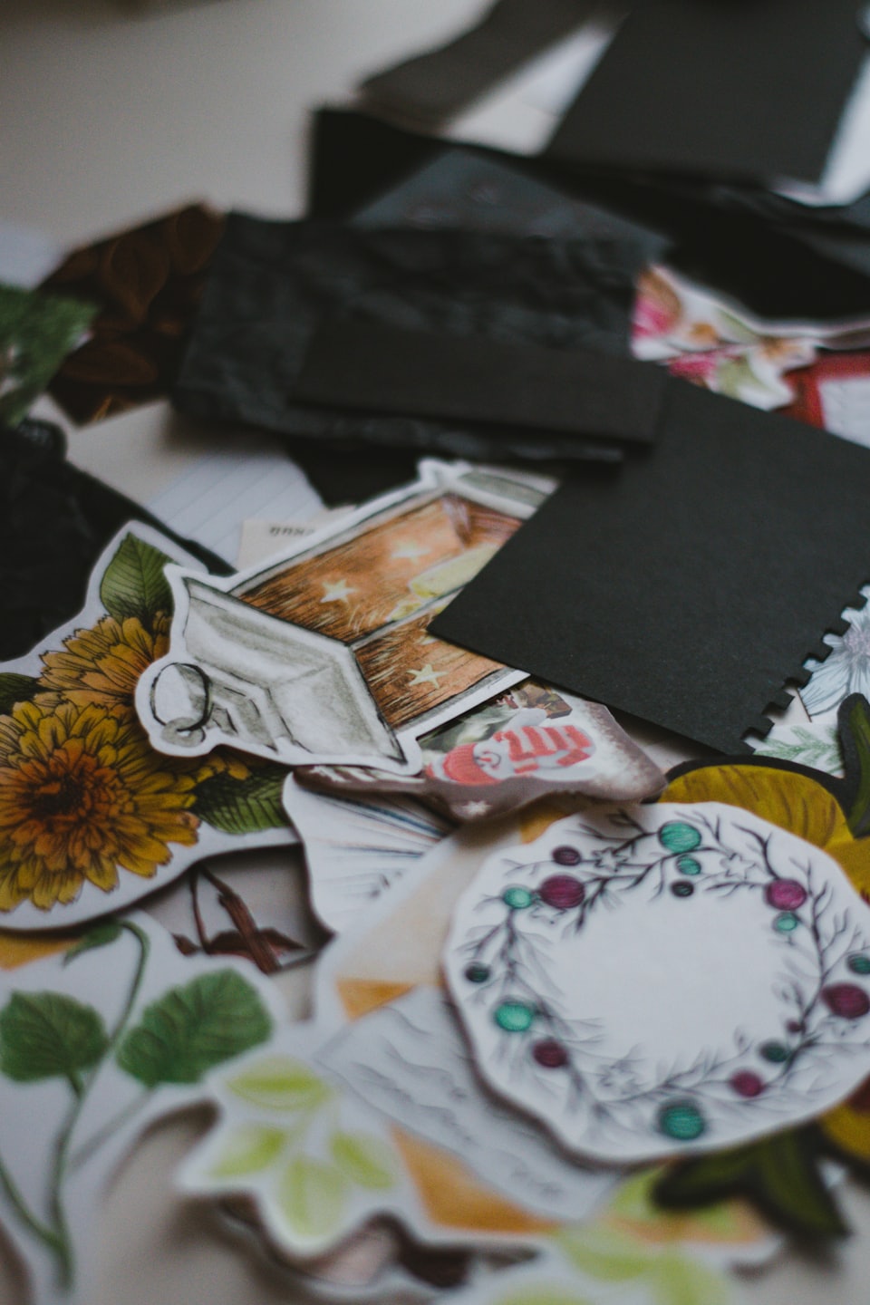 - Materials needed to make your notebook or journal such as coloured twine, buttons and washi tape